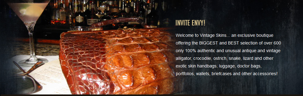 Discover our curated collection of vintage and antique exotic skin accessories, including doctor bags, portfolios, briefcases, change purses, wallets, key cases, and bracelets.